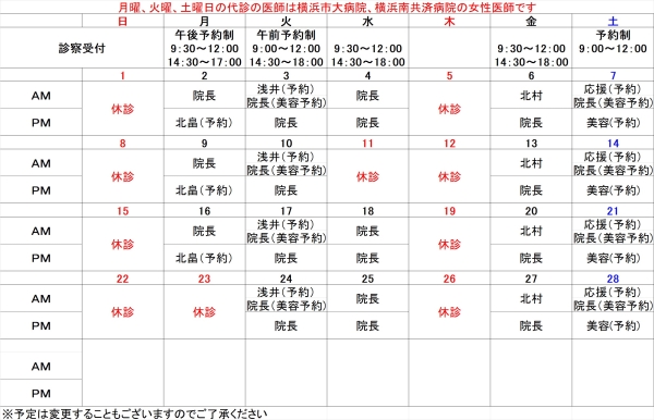 | 月 | 院長 | 応援医師 |